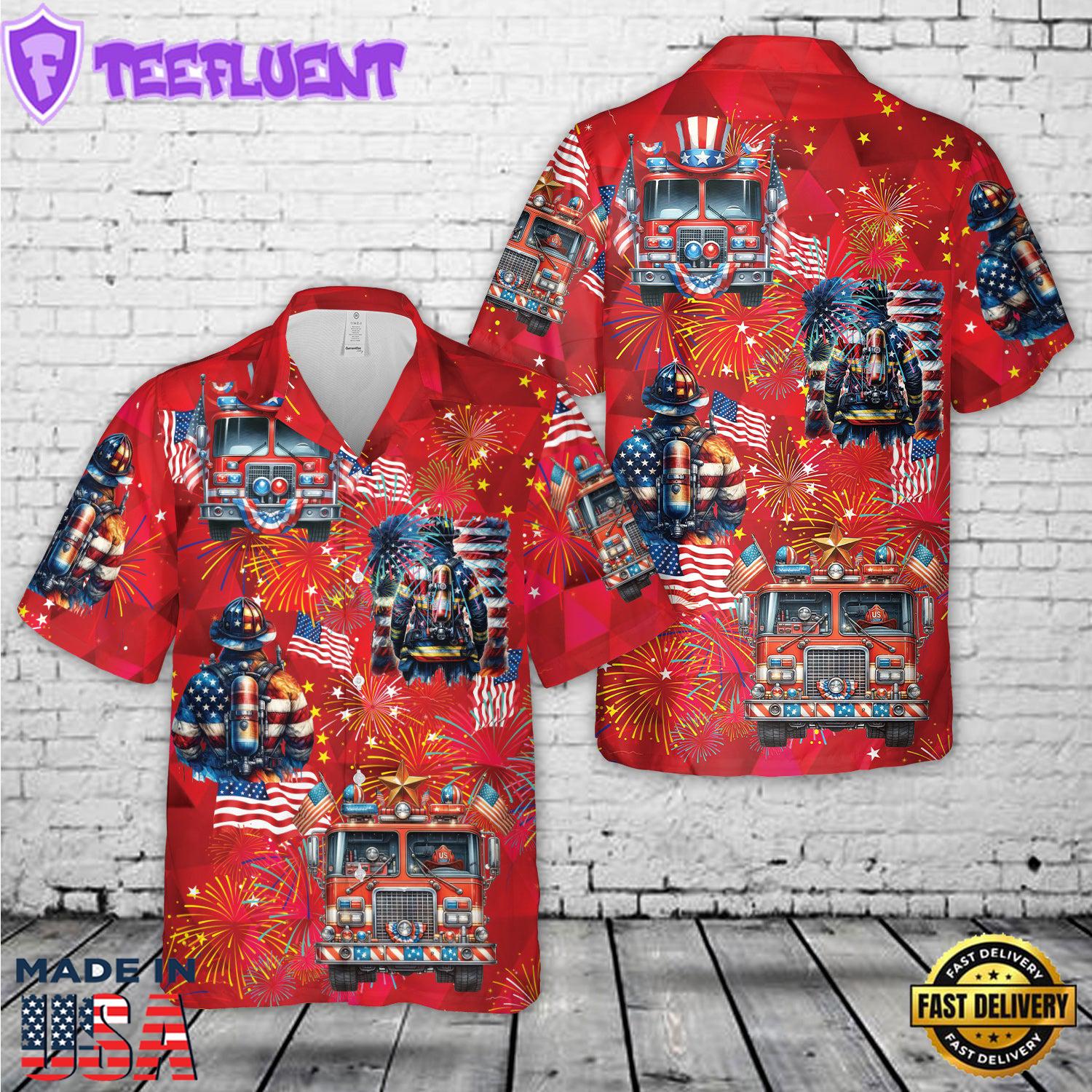 - Firefighter Fire Truck, 4th Of July Hawaiian Shirt Gift Father Day