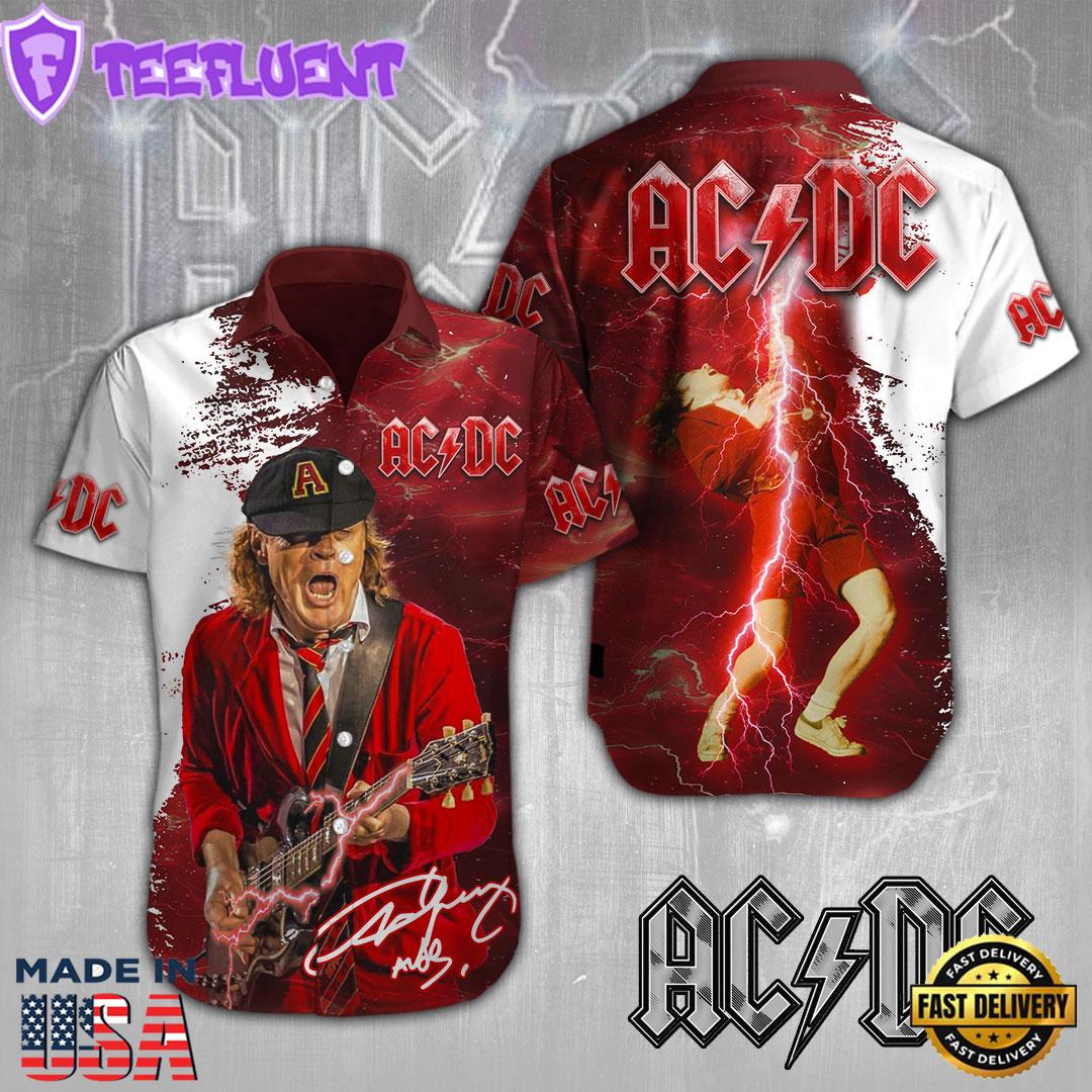 Photos Of ACDC x Angus Young Short Sleeve Dress Shirt For Fans Rock Hawaiian Shirt