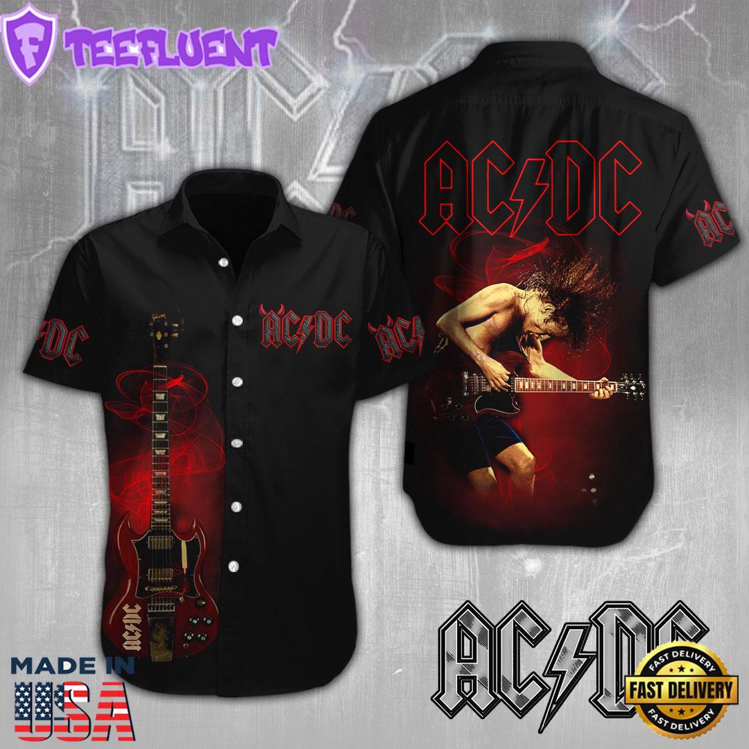 Photos Of ACDC x Angus Young Short Sleeve Dress Shirt For Man And Women Rock Hawaiian Shirt