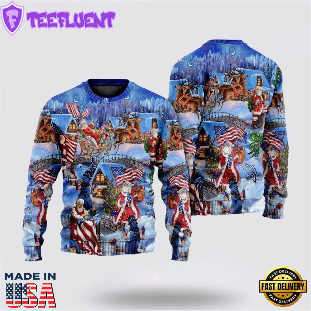 Photos Of America Christmas Patriotic Santa Claus Ugly Christmas Sweater For Men And Women Pets Ugly Christmas Sweater