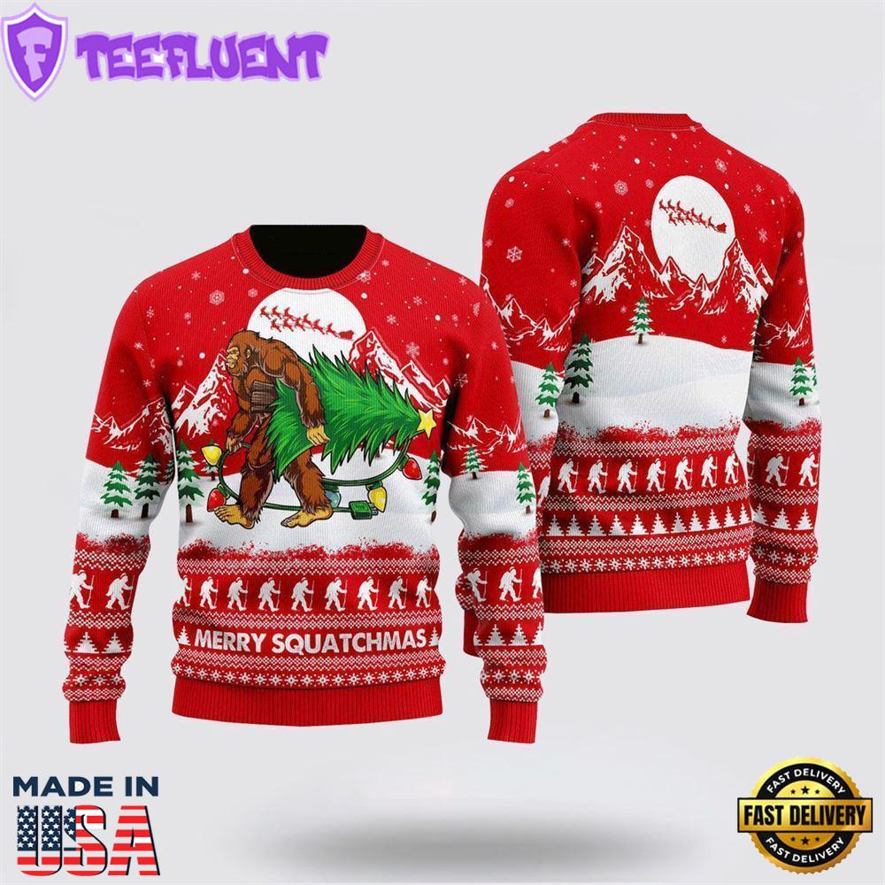 Product details: Bigfoot Mery Squatchmas Pine Tree Ugly Christmas Sweater For Men Pets Ugly Christmas Sweater