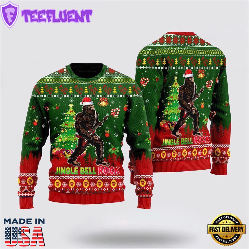 Bigfoot Playing Guitar Jingle Bell Rock Ugly Christmas Sweater For Men Pets Ugly Christmas Sweater Get into the festive spirit with our Ugly Christmas Sweater! Made from soft, cozy fabric, it offers warmth and comfort while showcasing fun, colorful holiday designs. Perfect for Christmas parties, family gatherings, or casual wear, this sweater spreads cheer and laughter all season long.