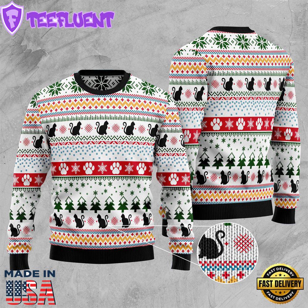 Photos Of Black Cat Pattern Ugly Christmas Sweater Gift Xmas