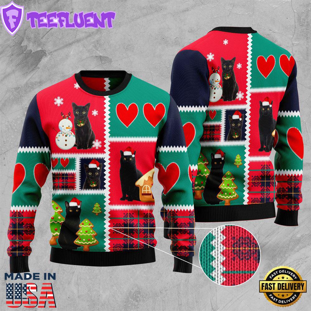 Black Cat Snow Ugly Christmas Sweater Gift Xmas Get into the festive spirit with our Ugly Christmas Sweater! Made from soft, cozy fabric, it offers warmth and comfort while showcasing fun, colorful holiday designs. Perfect for Christmas parties, family gatherings, or casual wear, this sweater spreads cheer and laughter all season long.