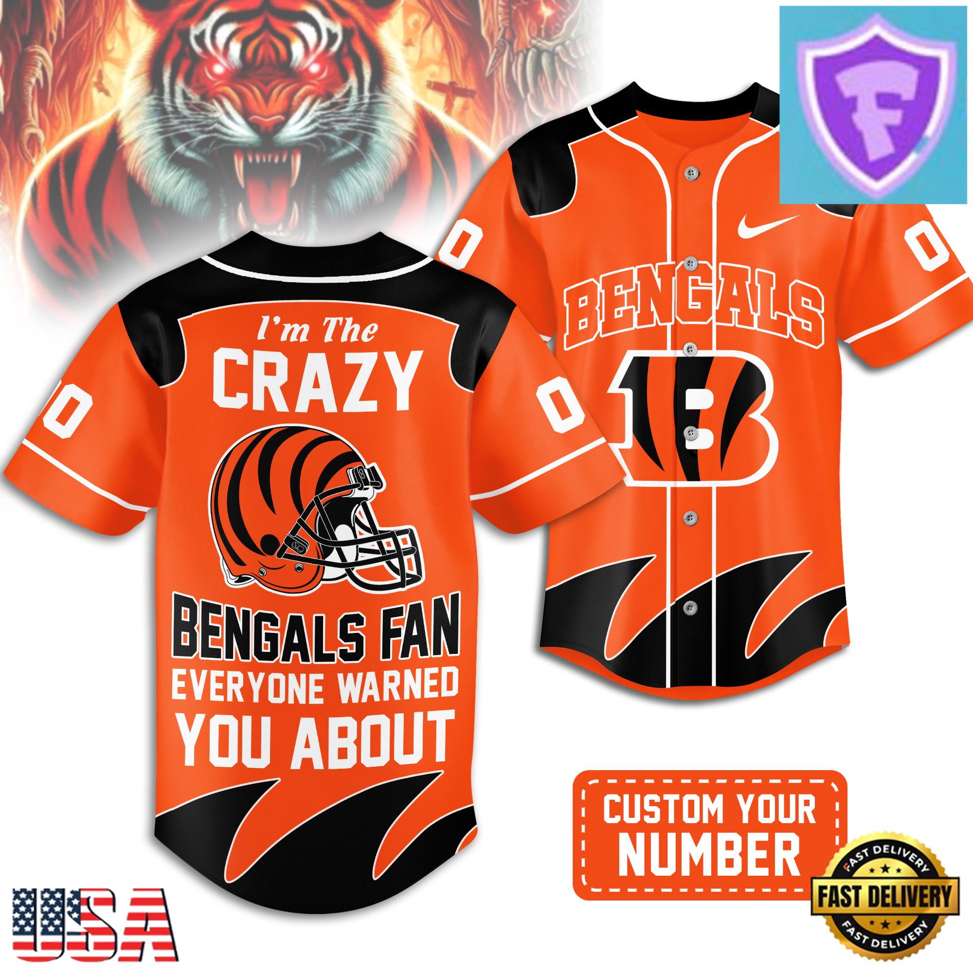 Cincinnati Bengals NFL Crazy Football Custom Baseball Jersey Shirt