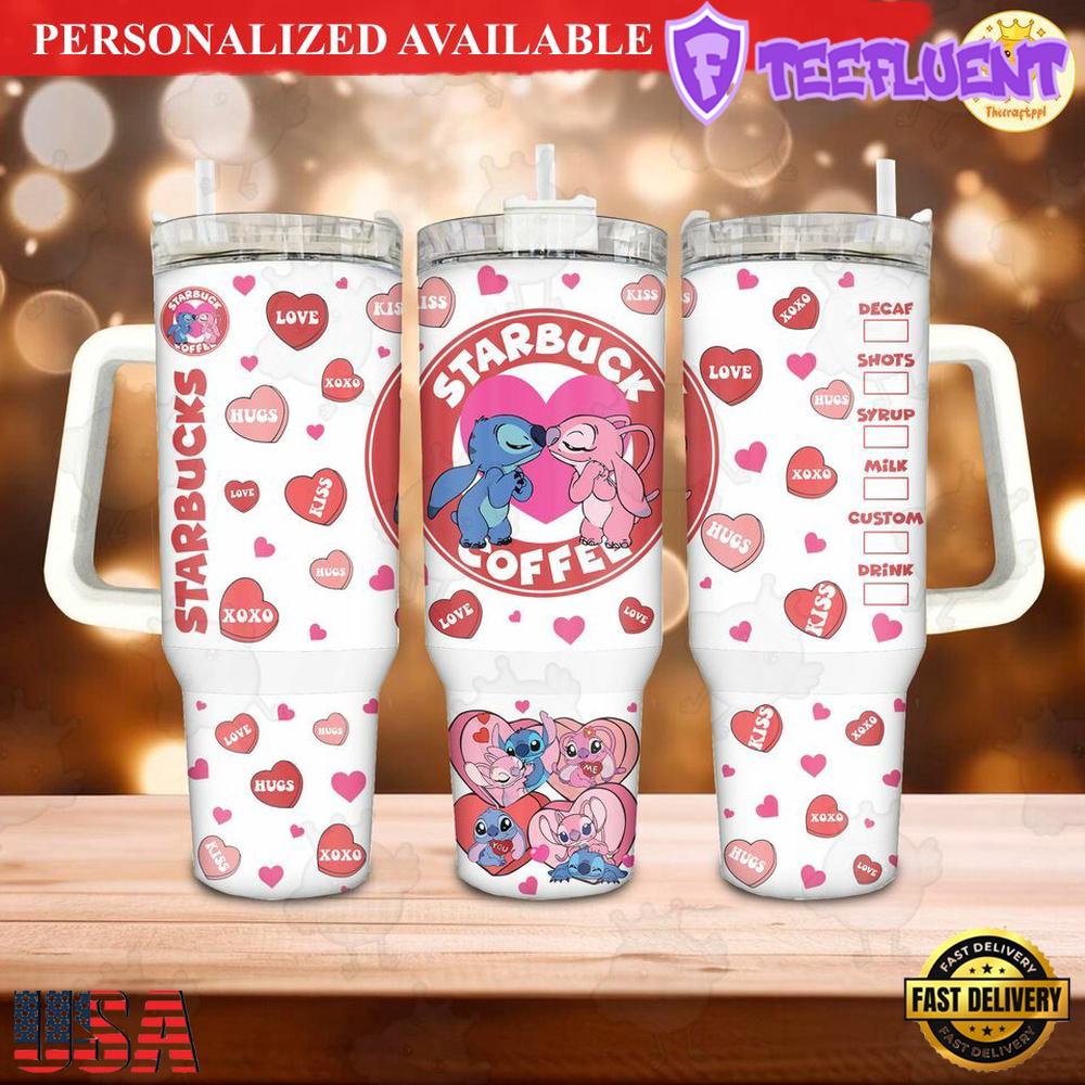 - Stitch Valentine Roses Stainless Steel Tumbler 40Oz With Handle , Gift For Valentine’s Days