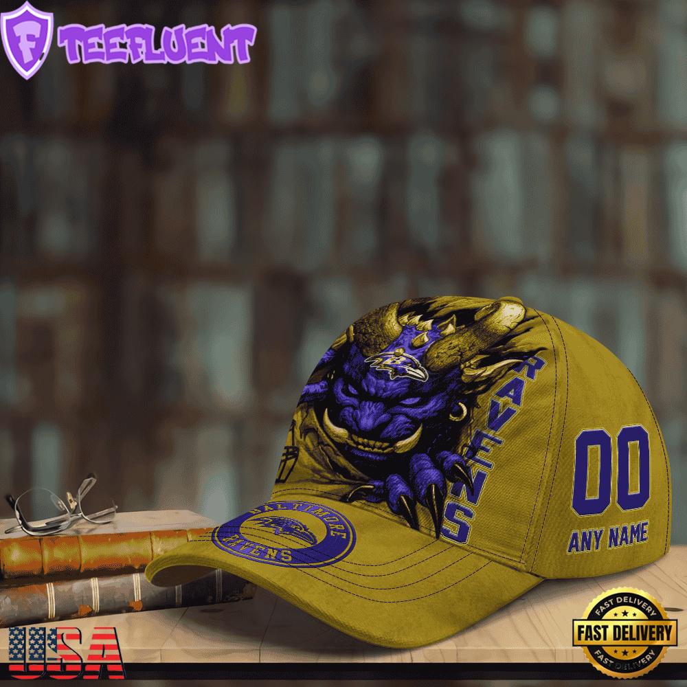 Custom Name And Number NFL Baltimore Ravens Demonhead Designer Baseball Caps