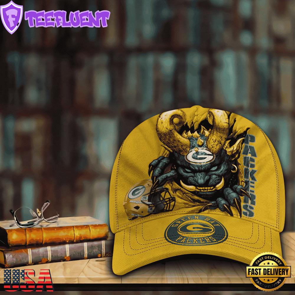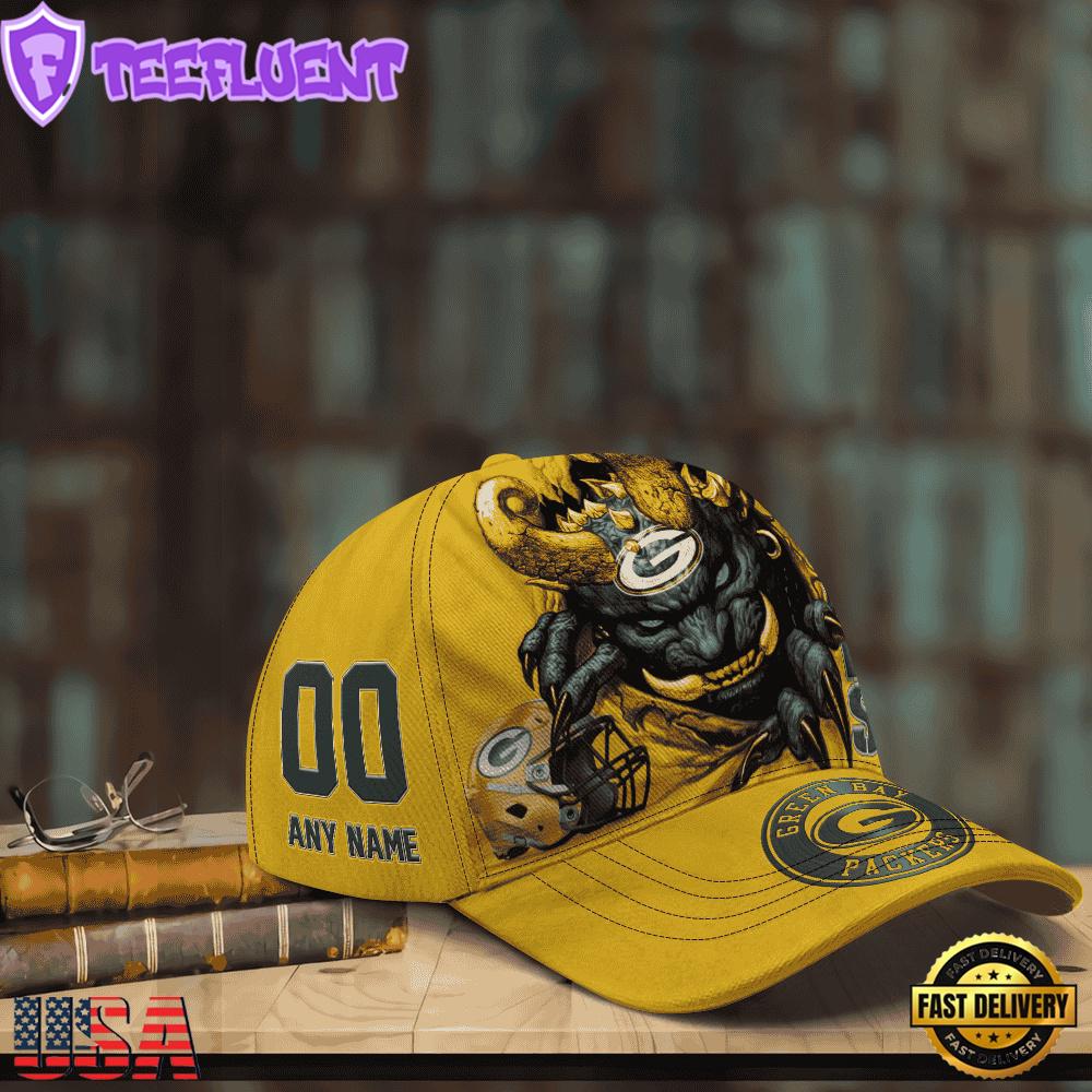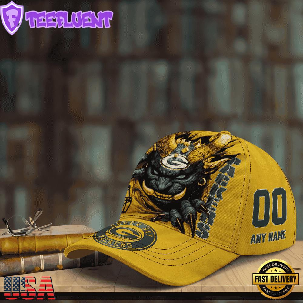 Custom Name And Number NFL Green Bay Packers Demonhead Designer Baseball Caps
