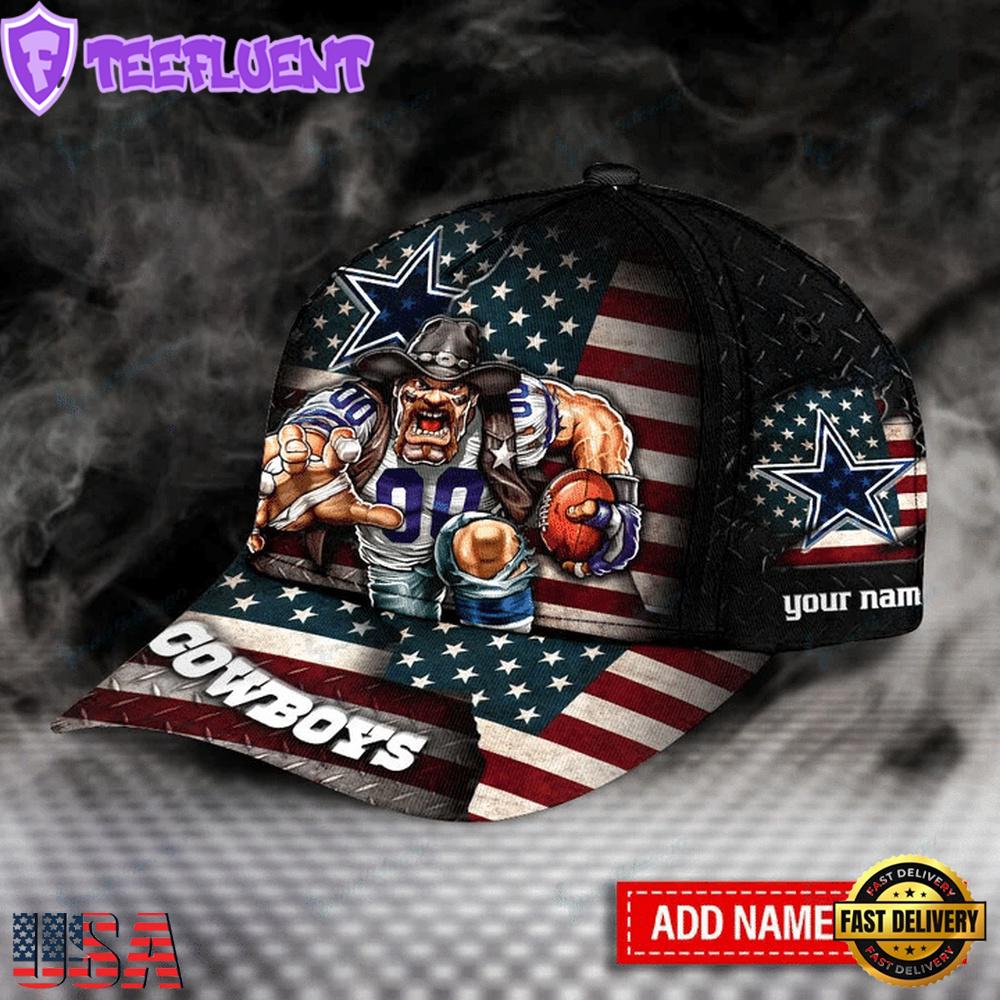 Custom Name Dallas Cowboys Mascot US Flag Team Sport Baseball Cap , Vintage Baseball Caps