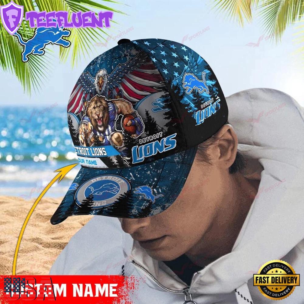 Custom Name Detroit Lions NFL Mascot Eagle Baseball Cap Hats