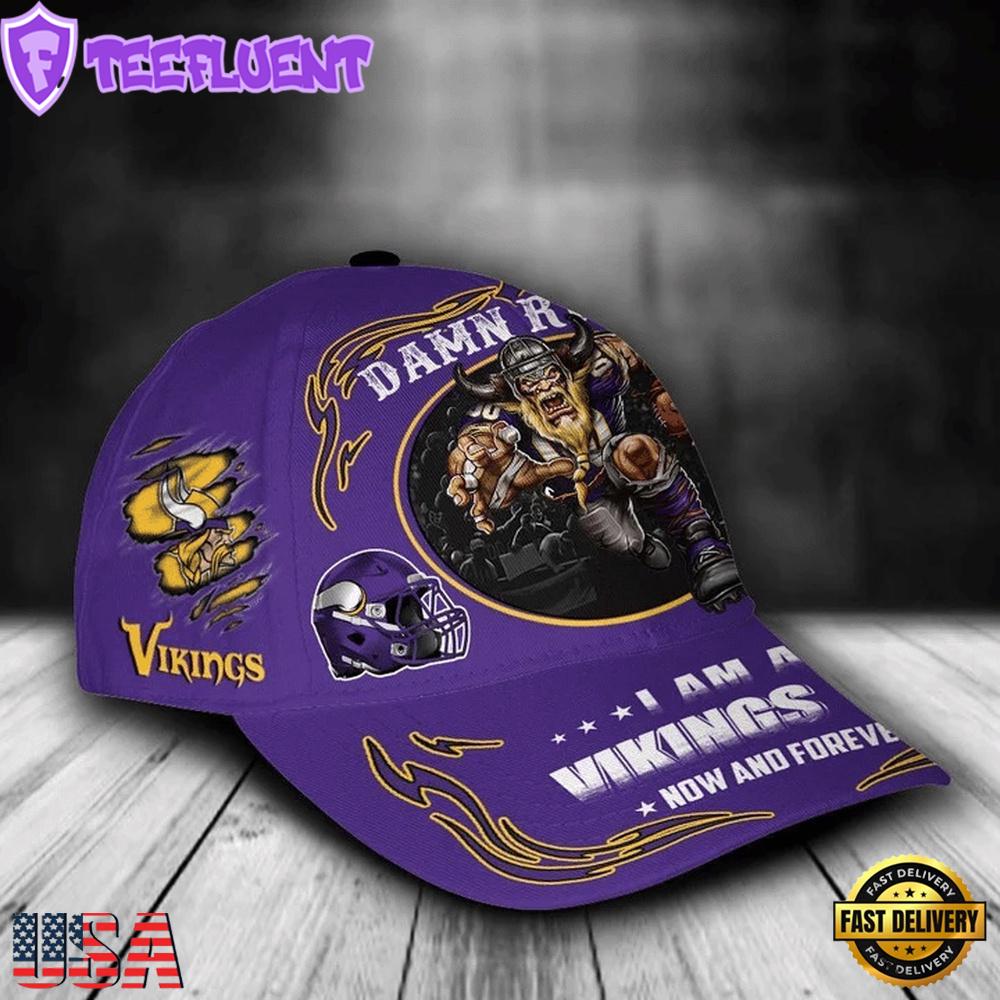 Custom Name Minnesota Vikings Mascot Damn Right Sport Baseball Cap , Vintage Baseball Caps