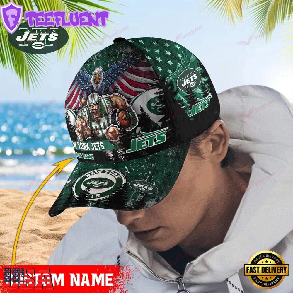 Custom Name New York Jets NFL Mascot Eagle Baseball Cap Hats