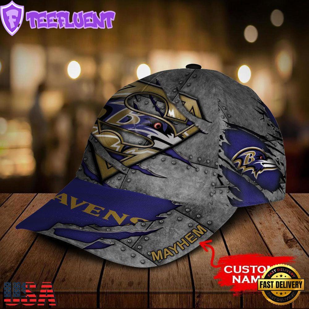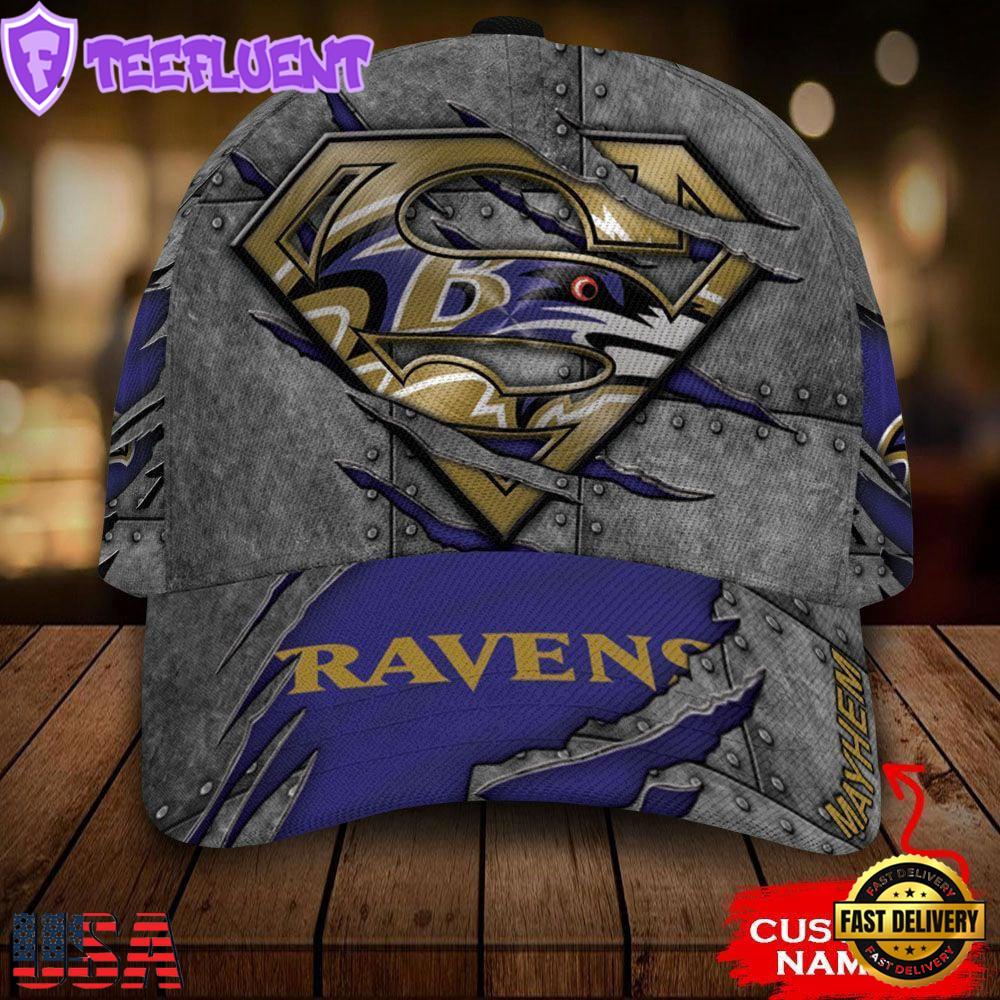 Custom Name NFL Baltimore Ravens Superman 3D Classic Cap Hats