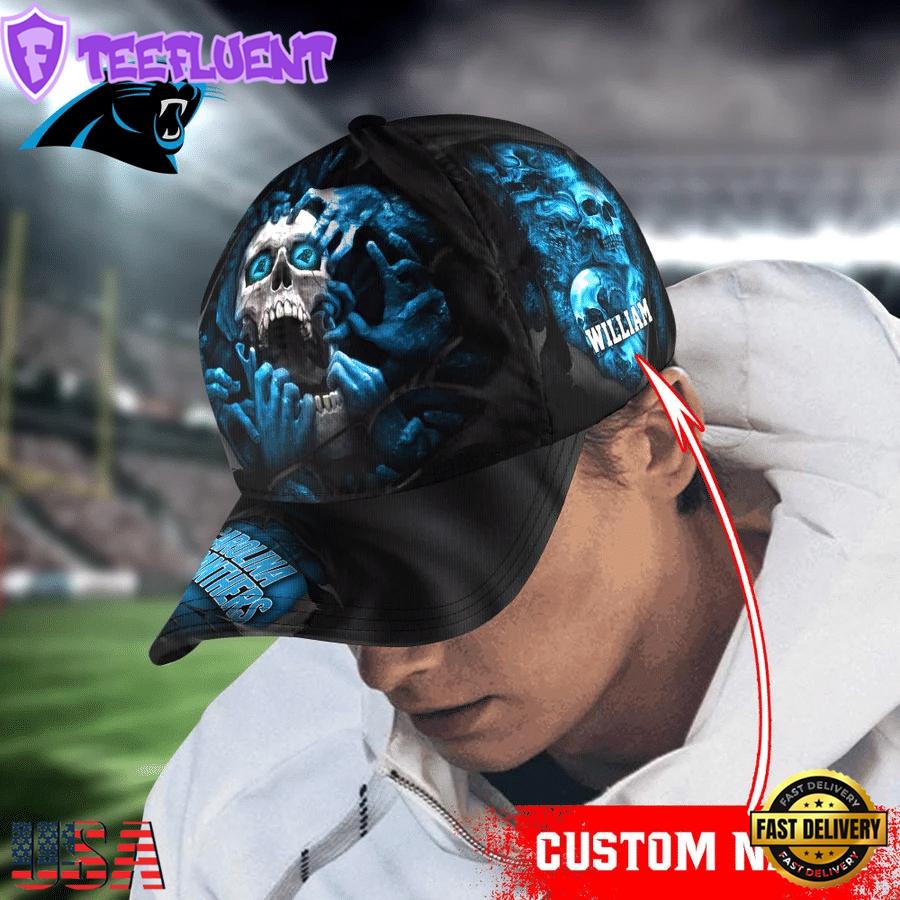 Custom Name NFL Carolina Panthers Skull Halloween Designer Baseball Caps