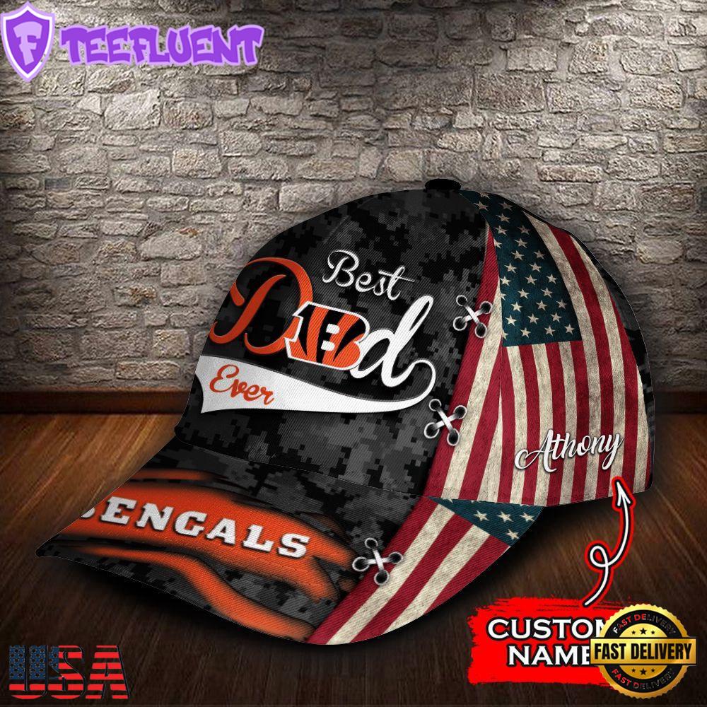 Custom Name NFL Cincinnati Bengals Best Dad USA Flag New Design Baseball Caps