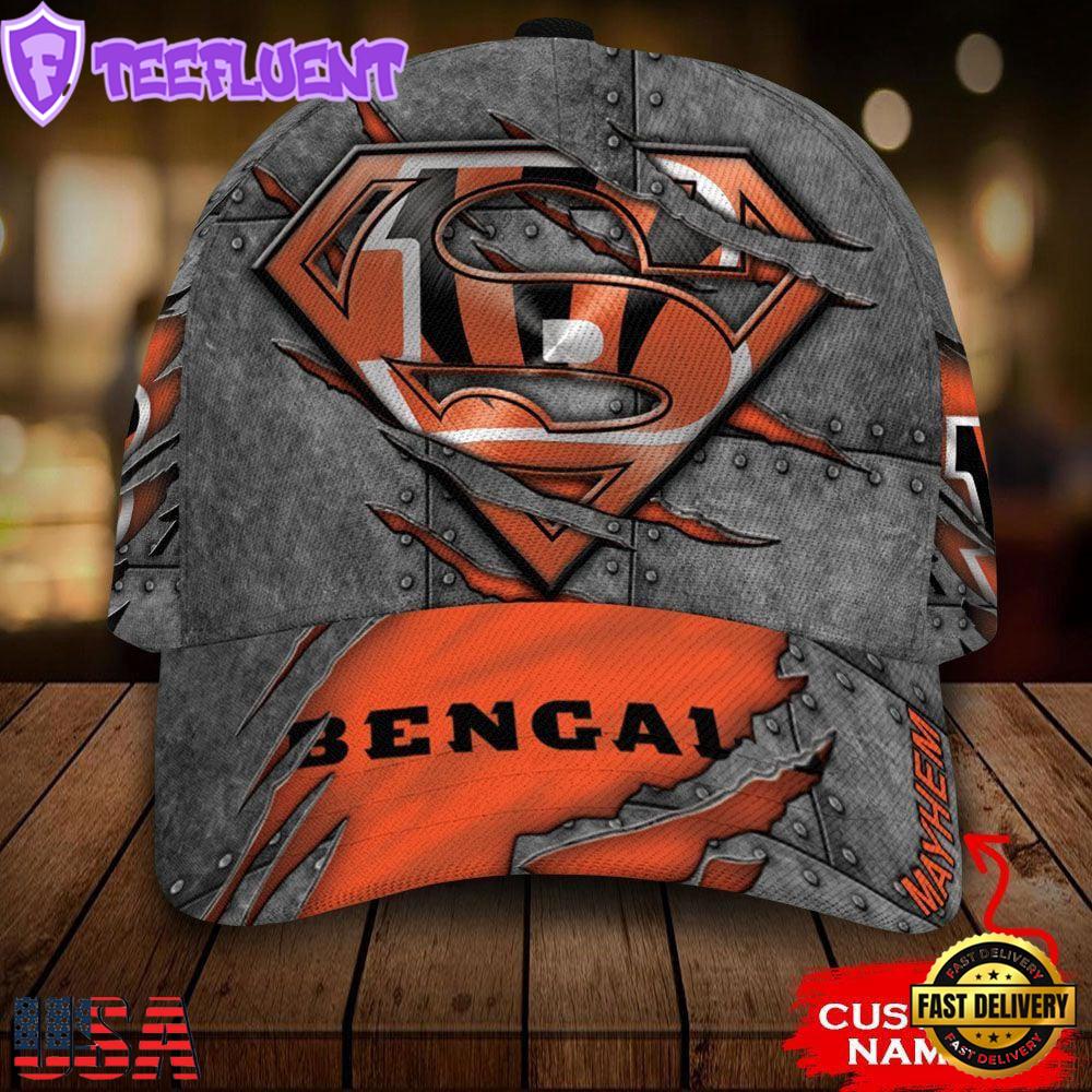 Custom Name NFL Cincinnati Bengals Superman 3D Classic Cap Hats