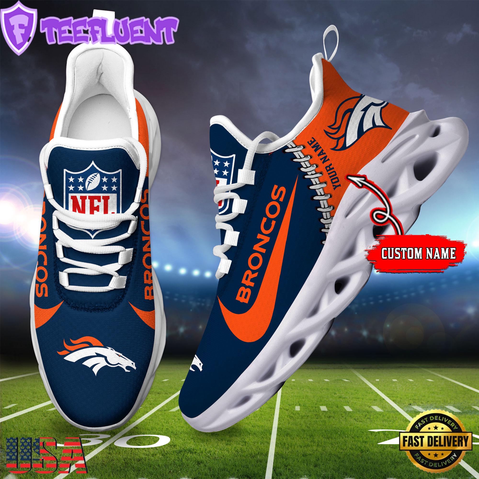 Custom Name NFL Denver Broncos Football Team Design Max Soul Shoes, Football New Sneaker Shoes , Running Sneakers Shoes