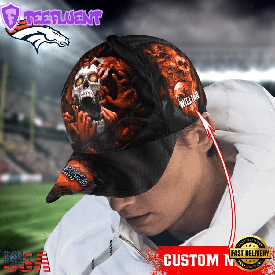 Custom Name NFL Denver Broncos Skull Halloween Designer Baseball Caps