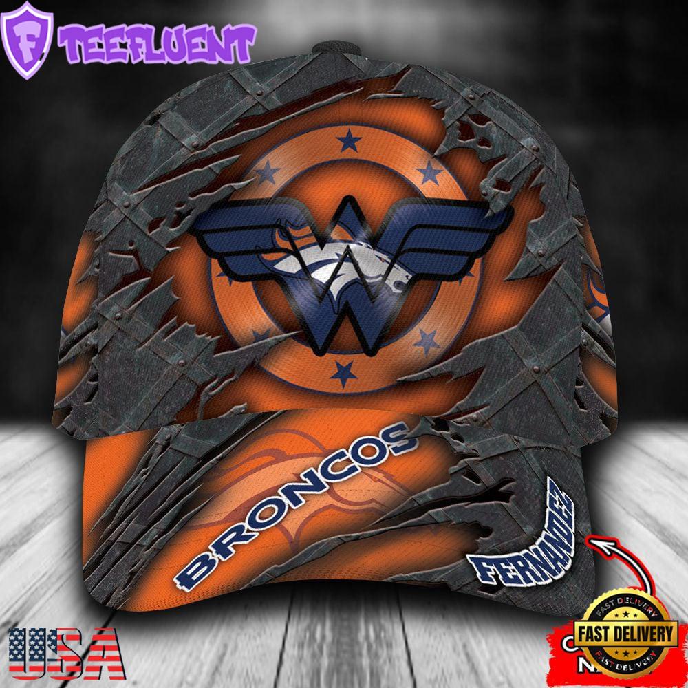 Custom Name NFL Denver Broncos Wonder Woman 3D Classic Cap Hats