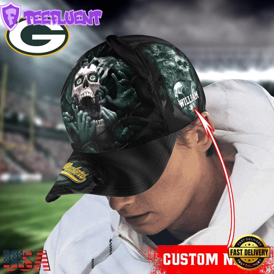 Custom Name NFL Green Bay Packers Skull Halloween Designer Baseball Caps