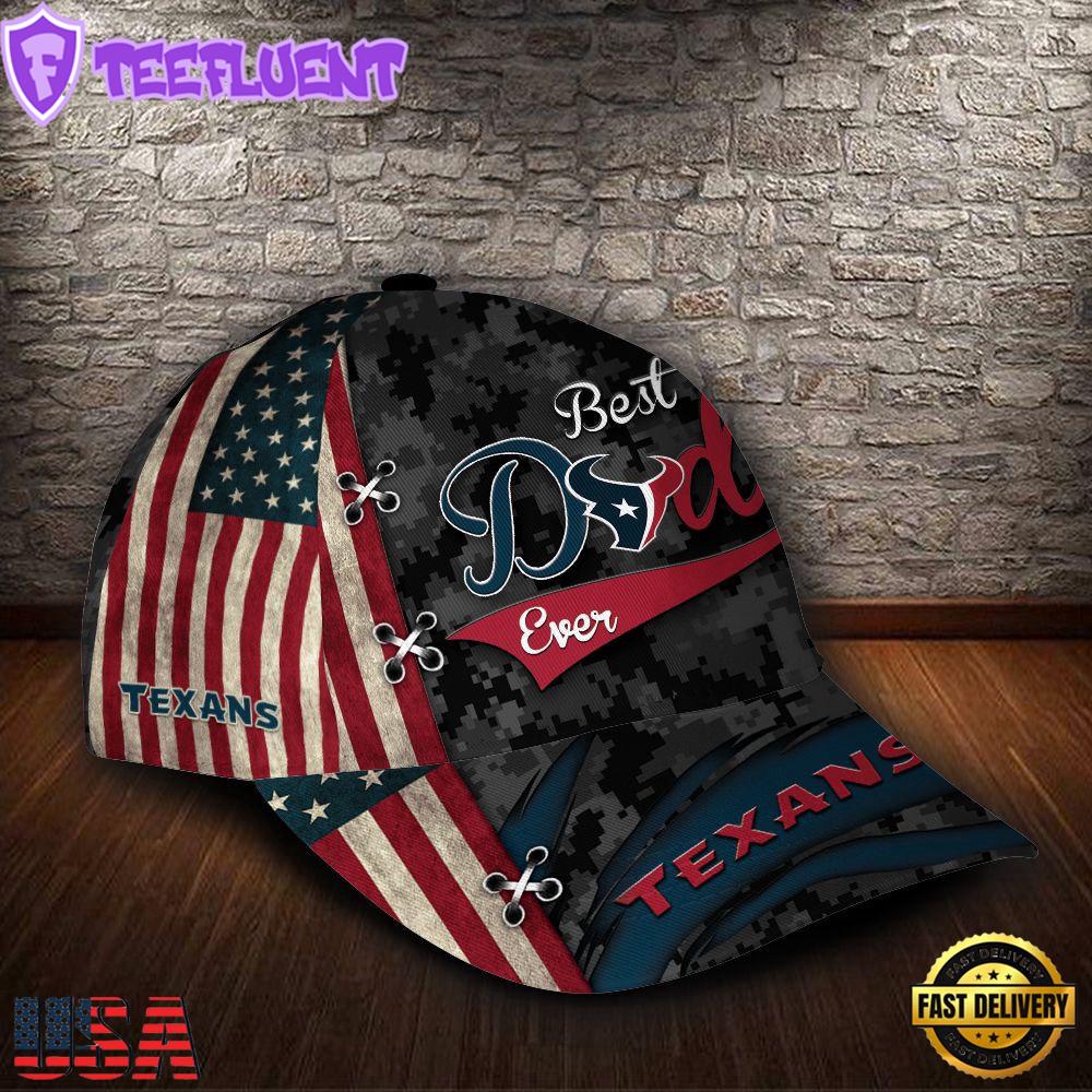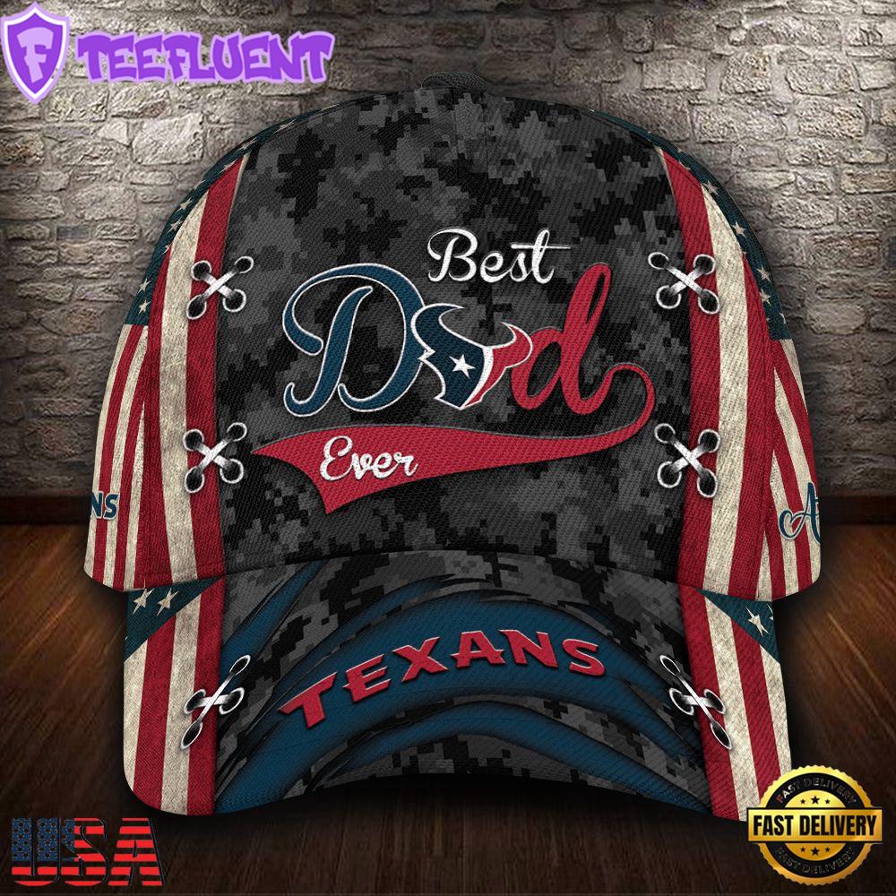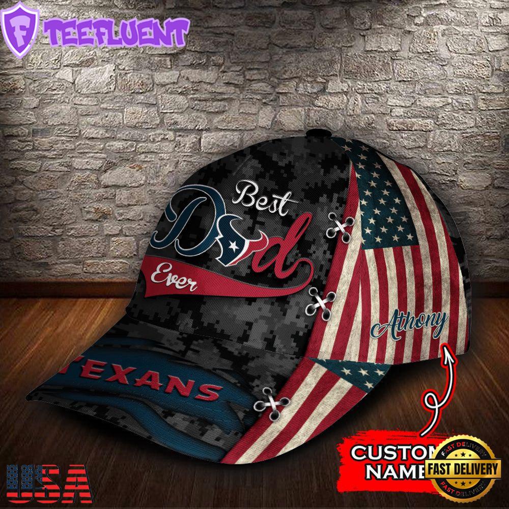 Custom Name NFL Houston Texans Best Dad USA Flag New Design Baseball Caps