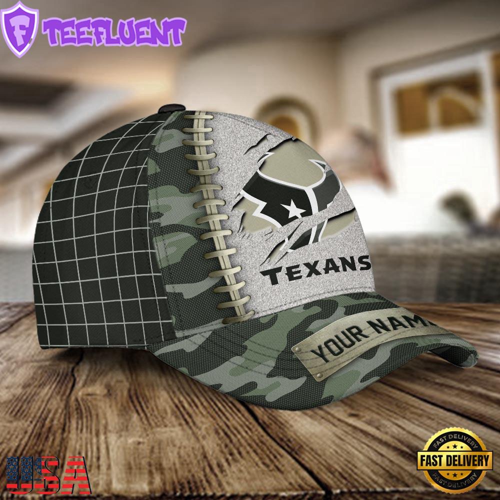 Custom Name NFL Houston Texans Camo Hunting Classic Cap Hats For Fans