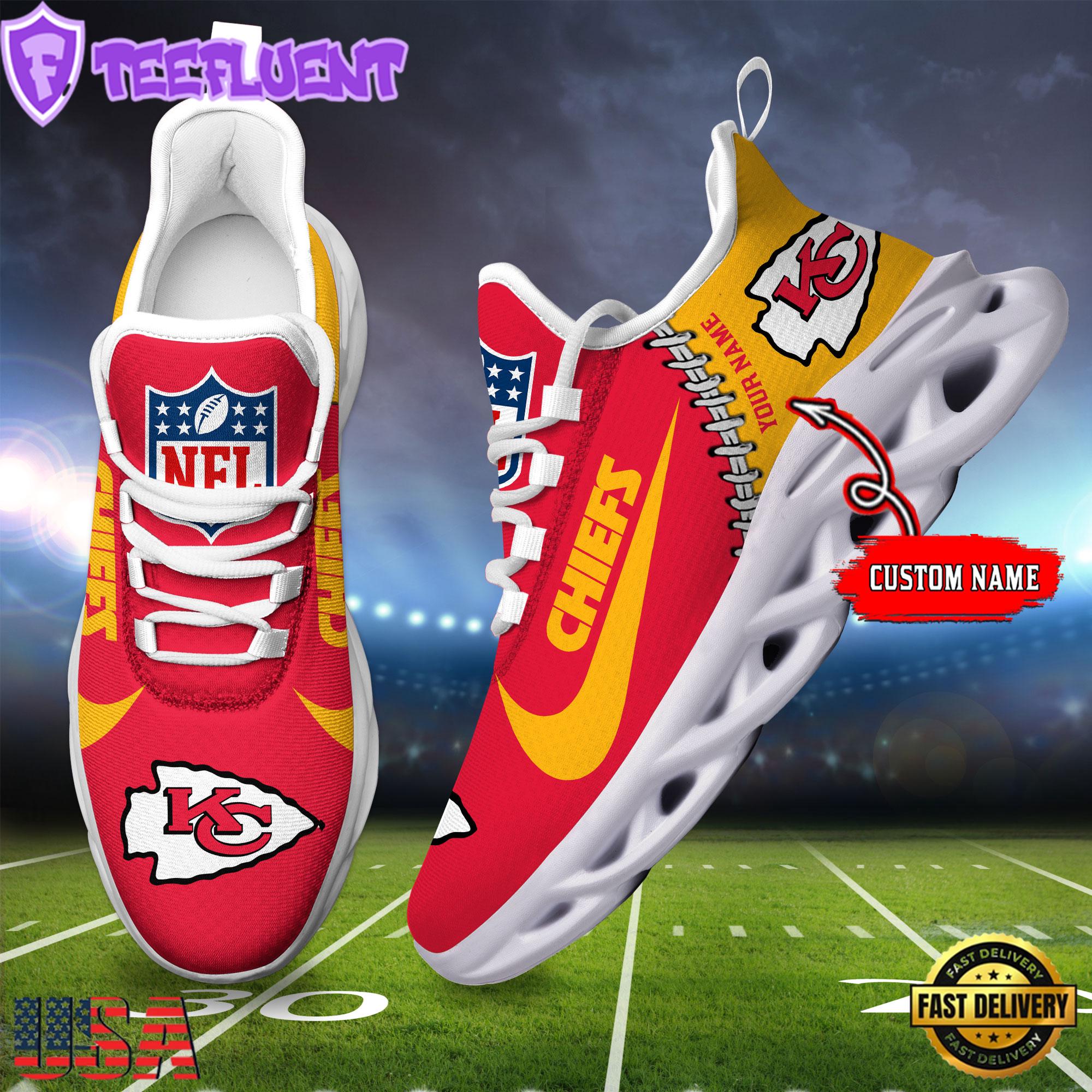 Custom Name NFL Kansas City Chiefs Football Team Design Max Soul Shoes, Football New Sneaker Shoes , Running Sneakers Shoes
