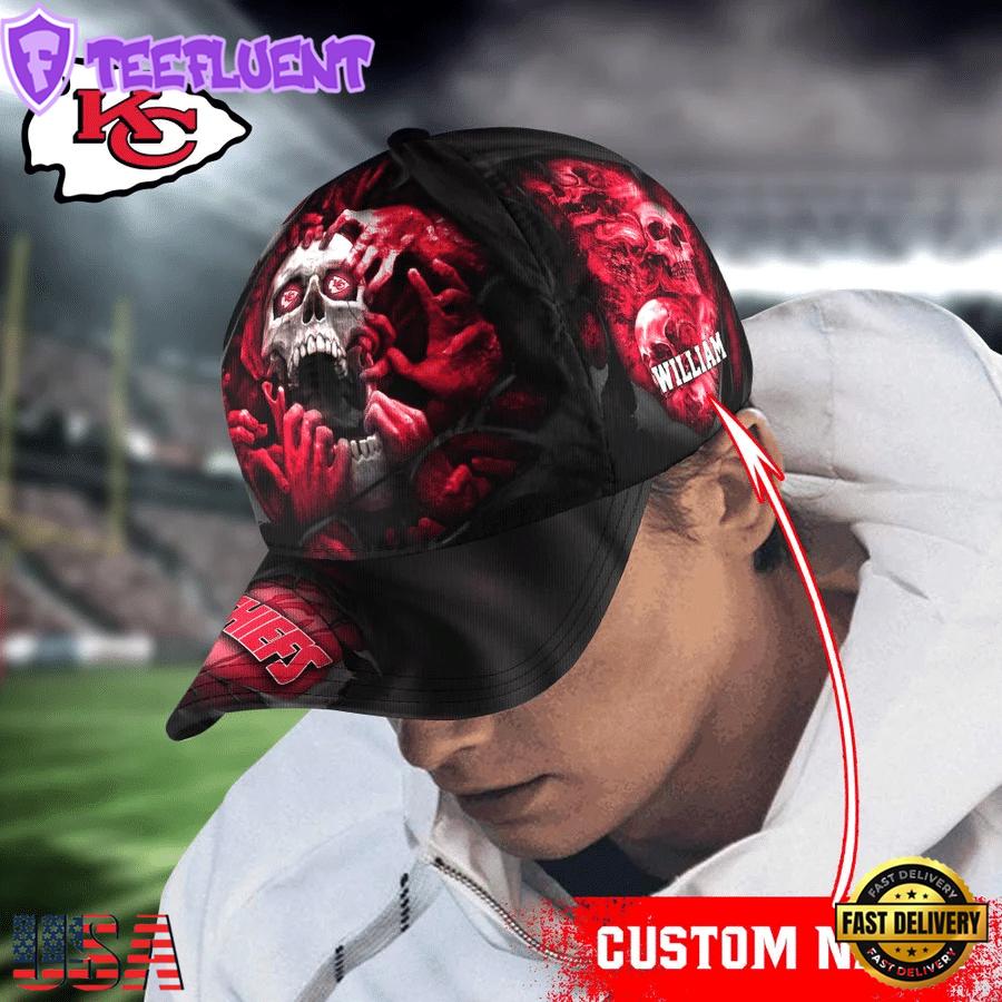 Custom Name NFL Kansas City Chiefs Skull Halloween Designer Baseball Caps
