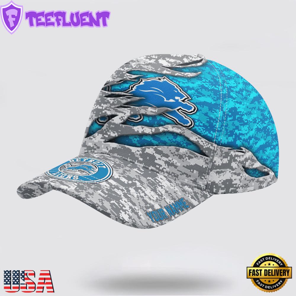 Custom Name NFL Lions Camo US Classic Baseball Cap Hats