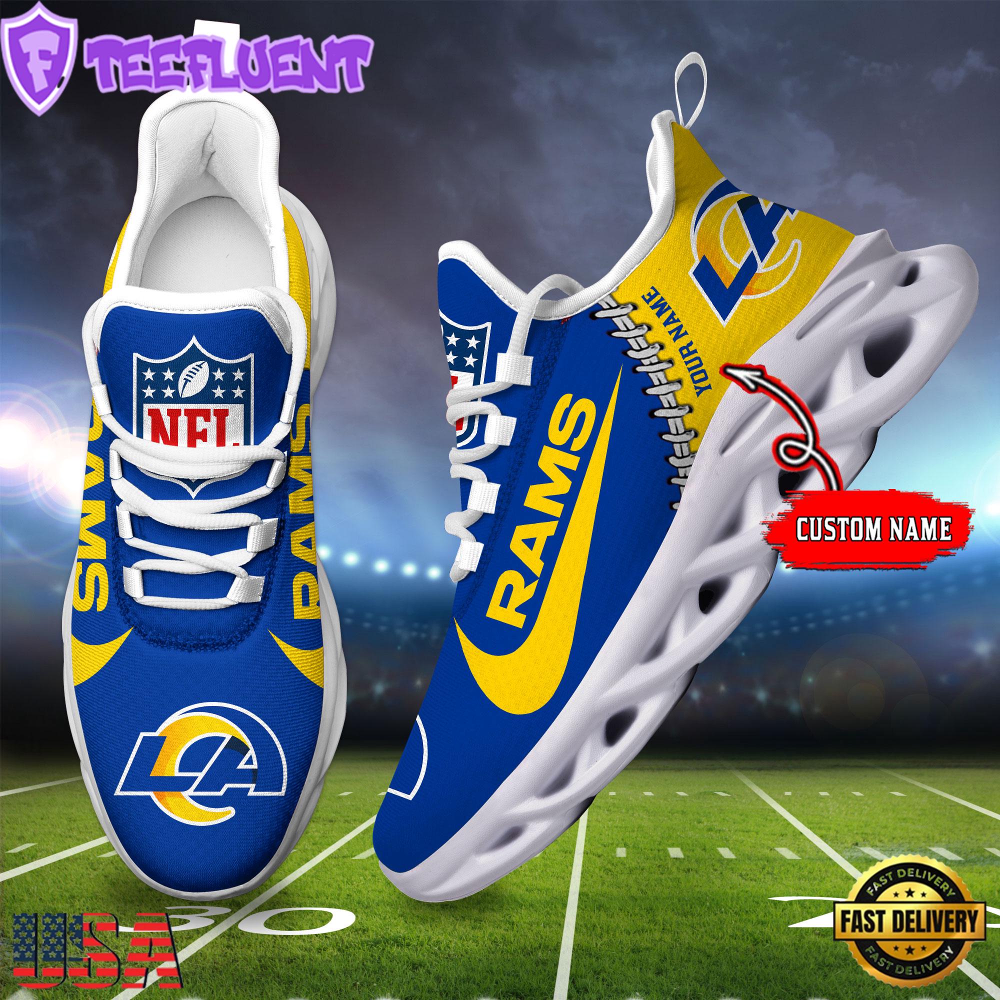 Custom Name NFL Los Angeles Rams Football Team Design Max Soul Shoes, Football New Sneaker Shoes , Running Sneakers Shoes