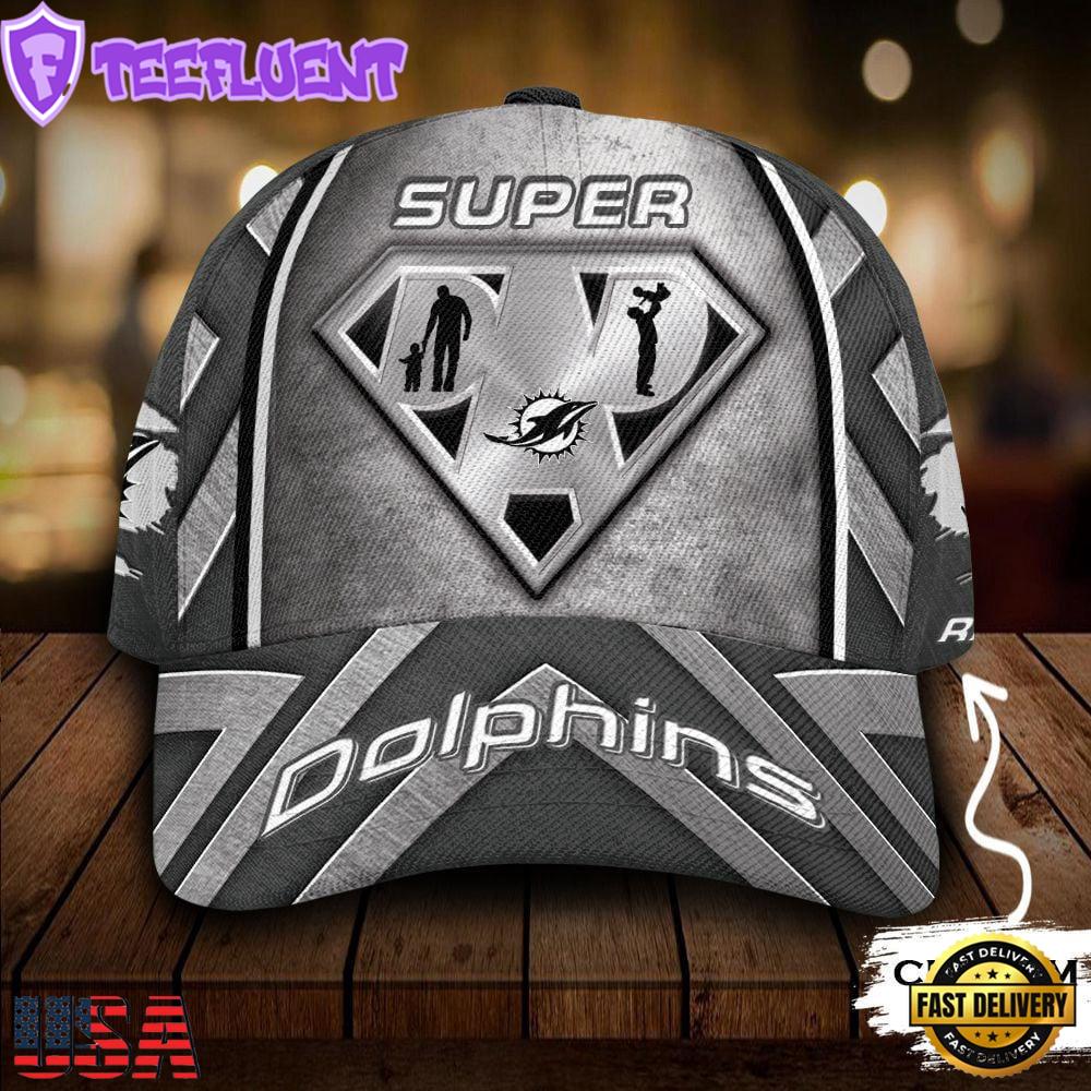 Custom Name NFL Miami Dolphins Superman Dad 3D Classic Cap Hats