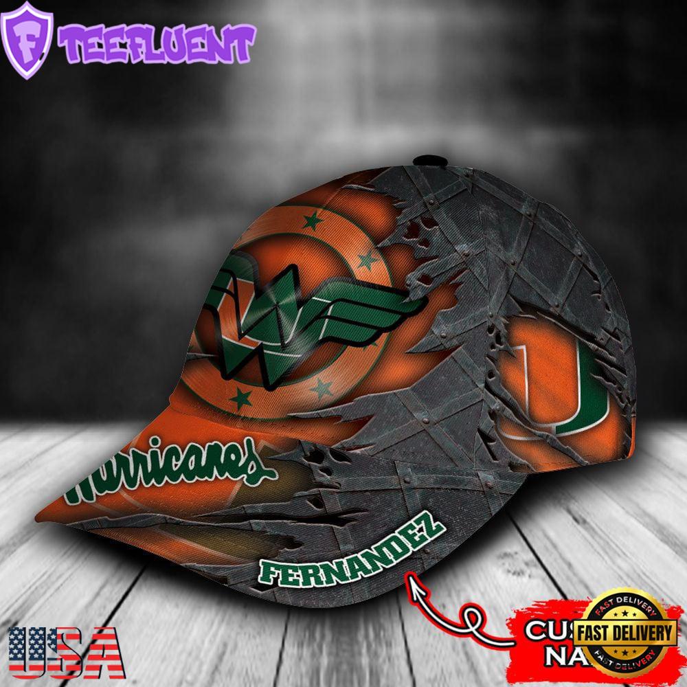 Photos Of Custom Name NFL Miami Hurricanes Wonder Woman Logo – Orange 3D Classic Cap Hats