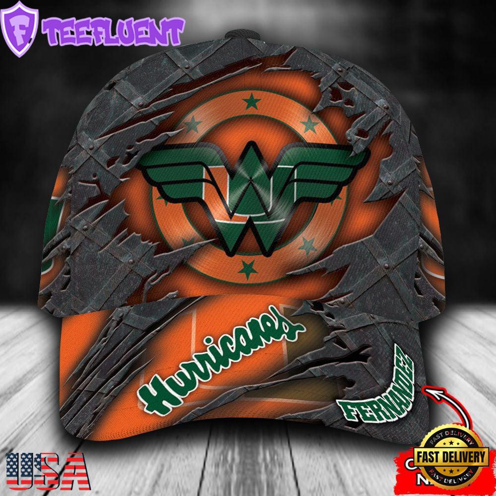 Custom Name NFL Miami Hurricanes Wonder Woman Logo – Orange 3D Classic Cap Hats