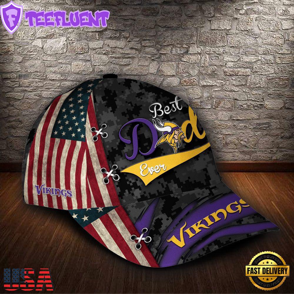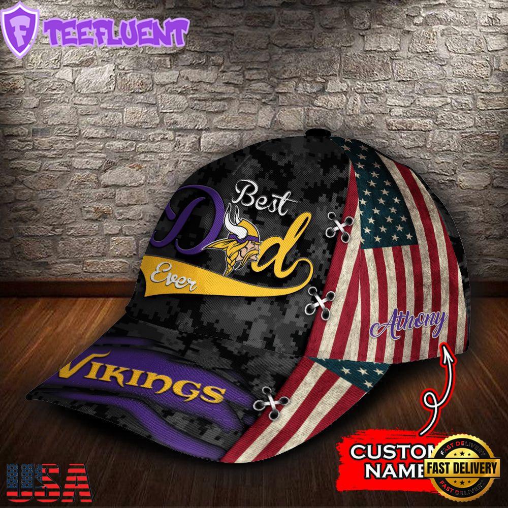 Custom Name NFL Minnesota Vikings Best Dad USA Flag New Design Baseball Caps