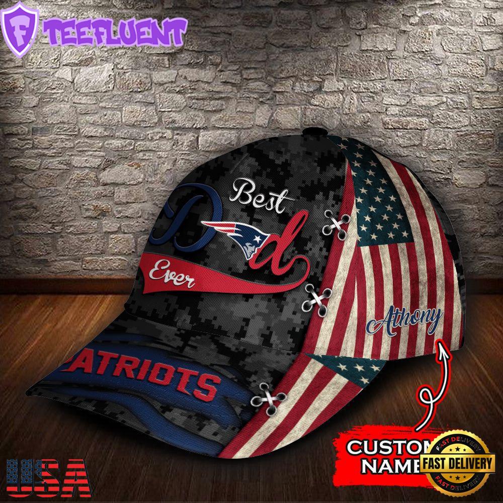 Custom Name NFL New England Patriots Best Dad New Design Baseball Caps
