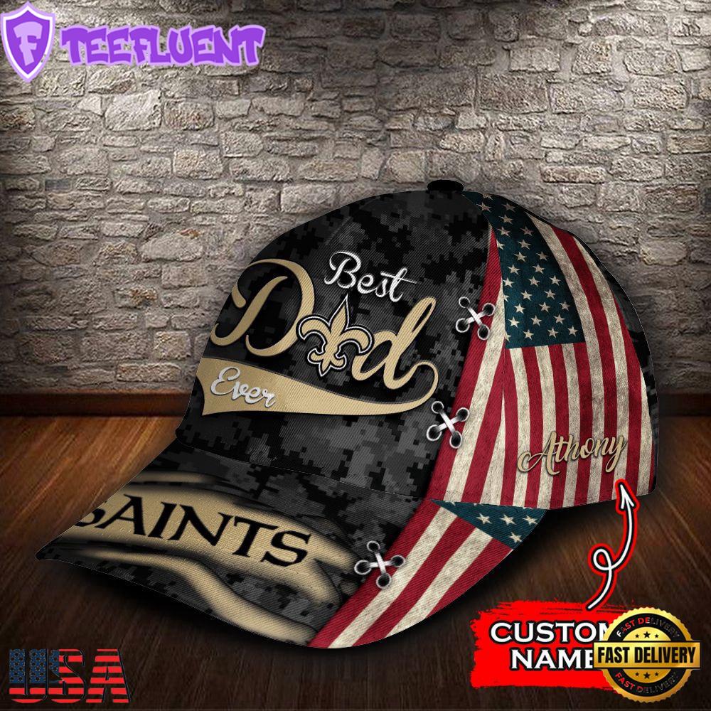 Custom Name NFL New Orleans Saints Best Dad USA Flag New Design Baseball Caps