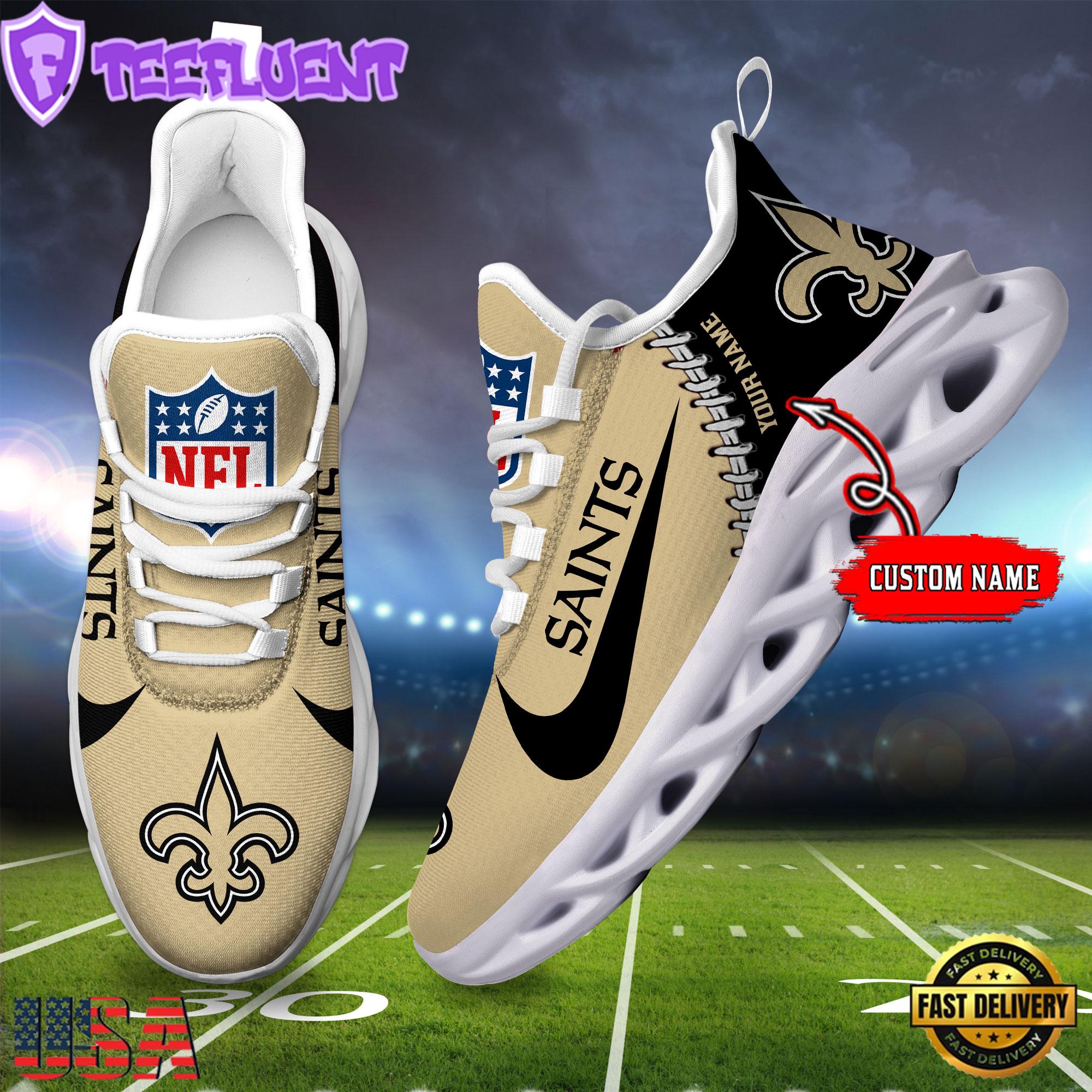 Custom Name NFL New Orleans Saints Football Team Design Max Soul Shoes, Football New Sneaker Shoes , Running Sneakers Shoes