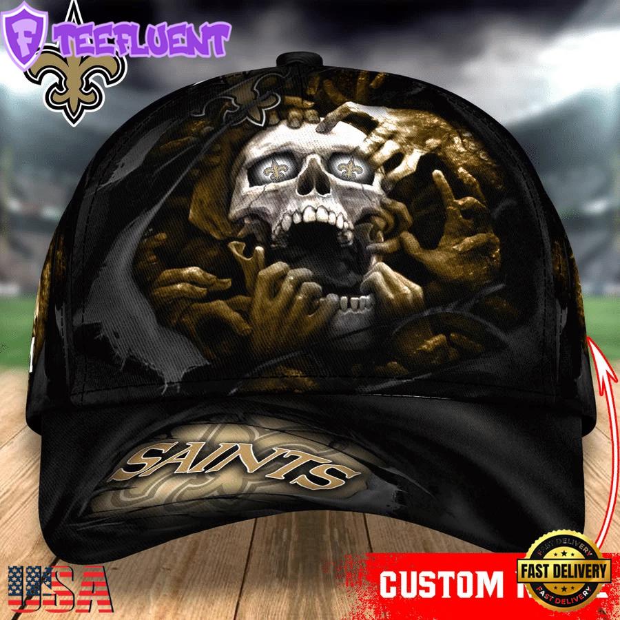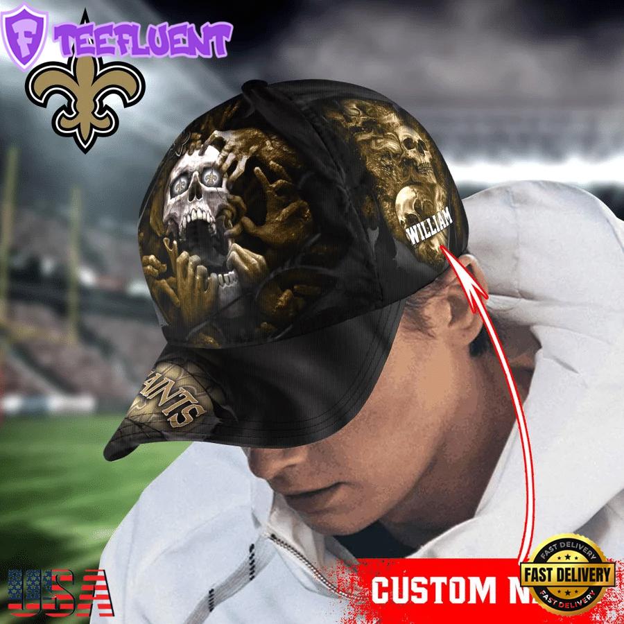 Custom Name NFL New Orleans Saints Skull Halloween Designer Baseball Caps