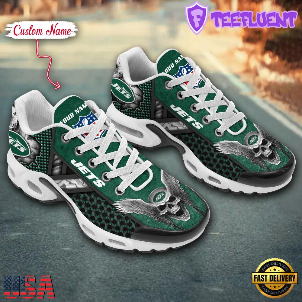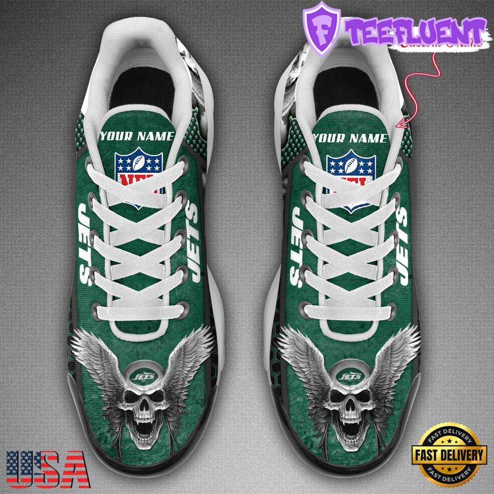 Photos Of Custom Name NFL New York Jets Skull Air Max Plus Shoes , Running Sneakers Shoes