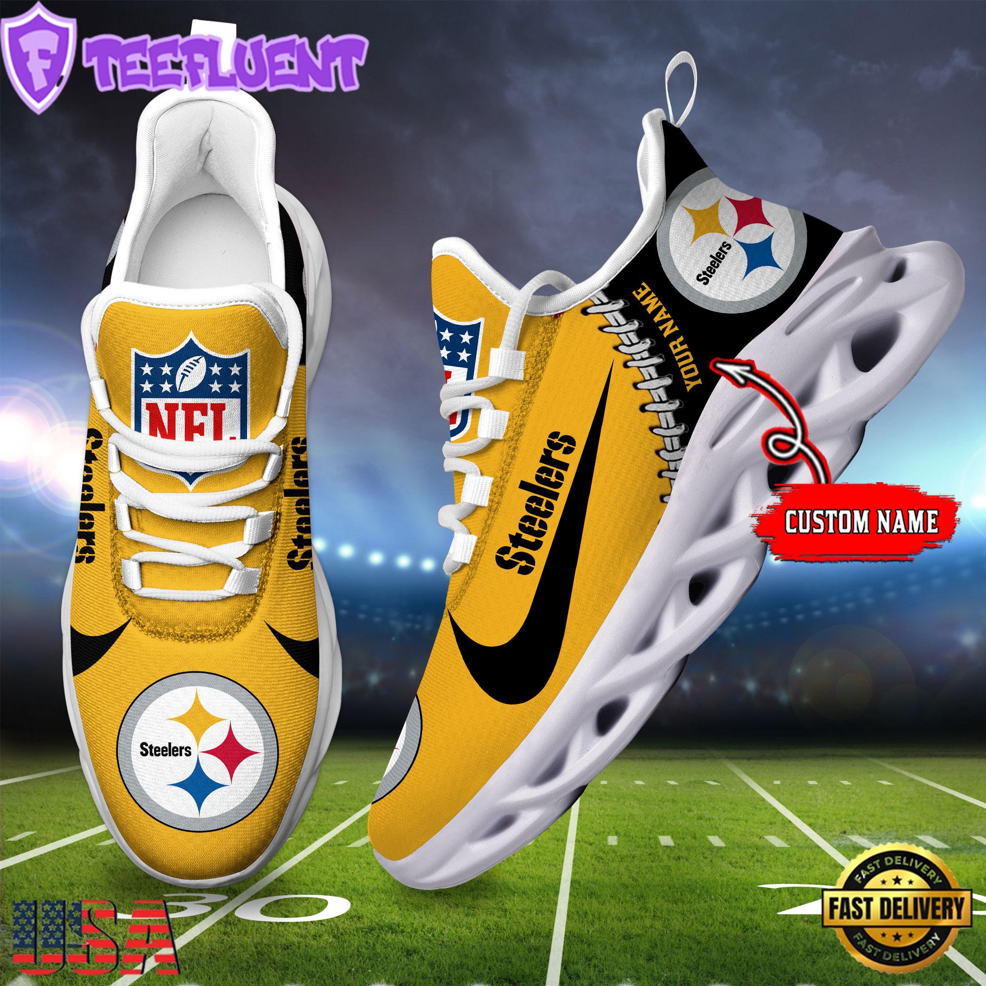 Custom Name NFL Pittsburgh Steelers Football Team Design Max Soul Shoes, Football New Sneaker Shoes , Running Sneakers Shoes