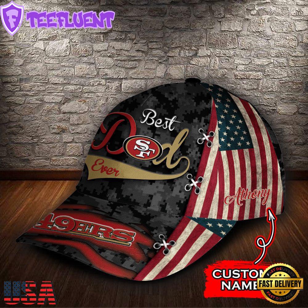 Custom Name NFL San Francisco 49Ers Best Dad USA Flag New Design Baseball Caps