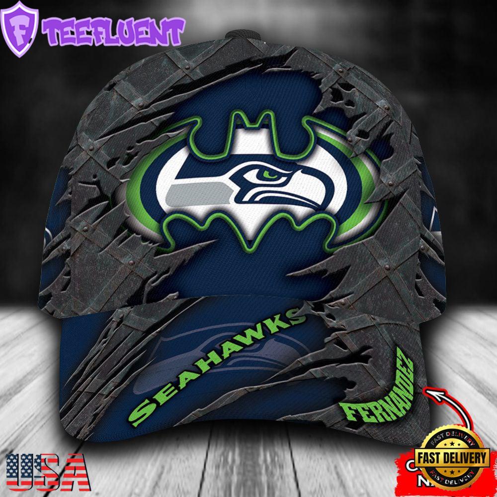 Custom Name NFL Seattle Seahawks Batman Logo – Navy 3D Classic Cap Hats