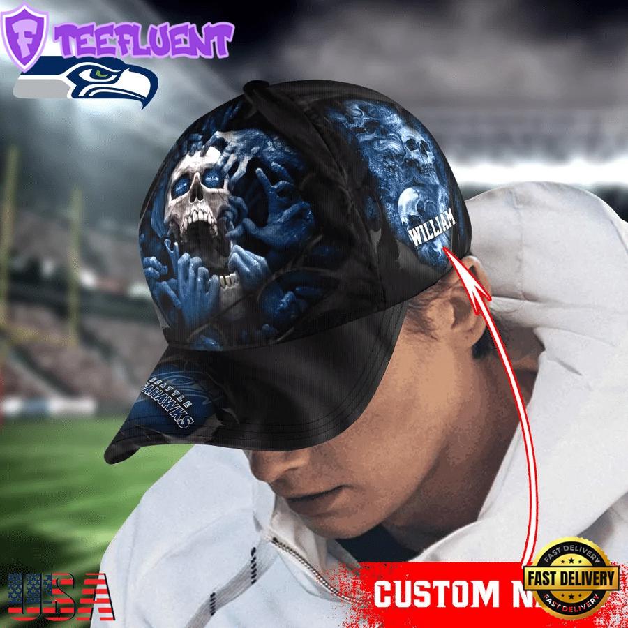 Custom Name NFL Seattle Seahawks Skull Halloween Designer Baseball Caps