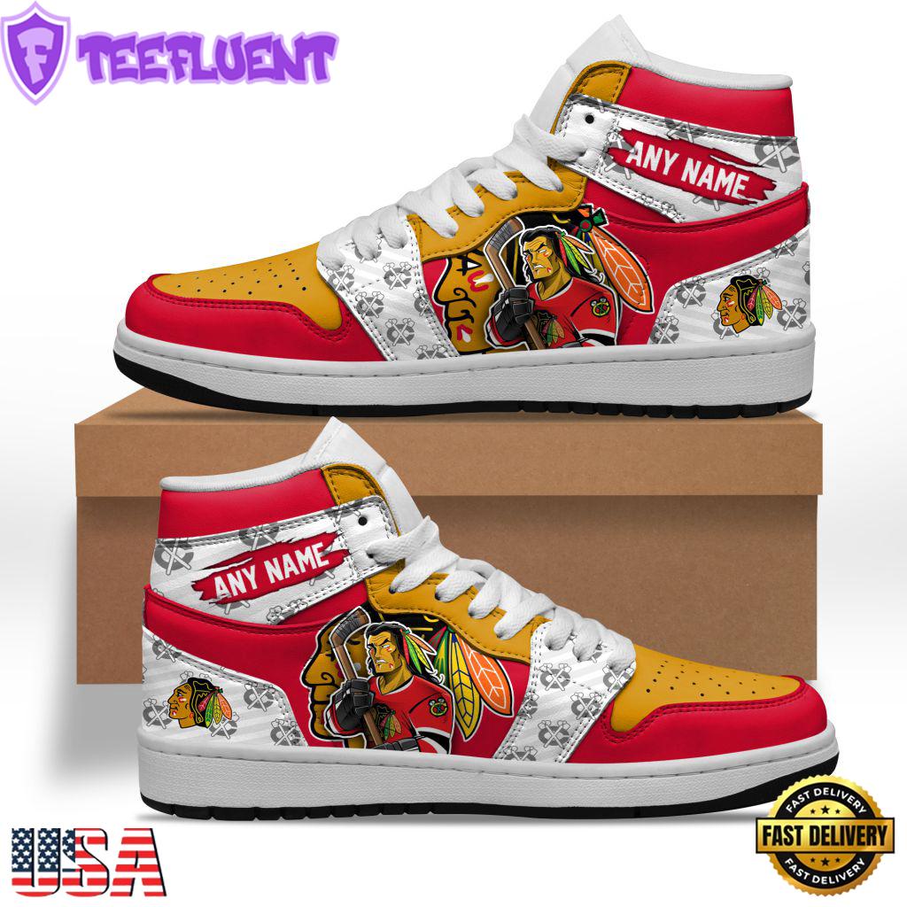 Custom Name NHL Chicago Blackhawks Team Mascot Design Air Jordan 1 Hightop Shoes Sneakers , NHL Shoes Sneakers For Mens