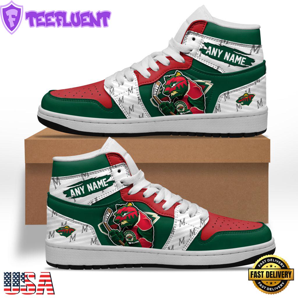 Custom Name NHL Minnesota Wild Team Mascot Design Air Jordan 1 Hightop Shoes Sneakers , NHL Shoes Sneakers For Mens