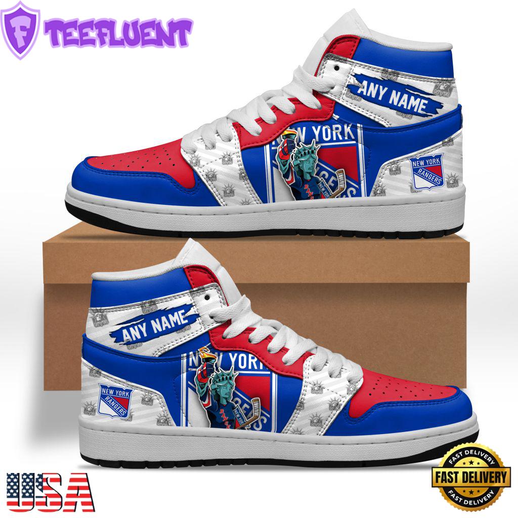 Custom Name NHL New York Rangers Team Mascot Design Air Jordan 1 Hightop Shoes Sneakers , NHL Shoes Sneakers For Mens