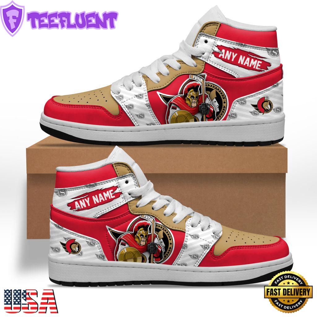 Custom Name NHL Ottawa Senators Team Mascot Design Air Jordan 1 Hightop Shoes Sneakers , NHL Shoes Sneakers For Mens