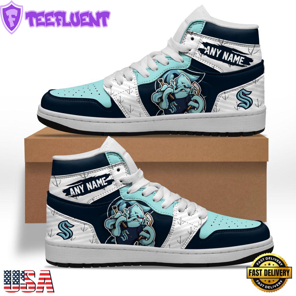 Custom Name NHL Seattle Kraken Team Mascot Design Air Jordan 1 Hightop Shoes Sneakers , NHL Shoes Sneakers For Mens