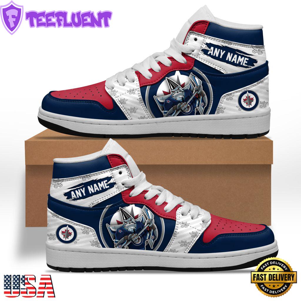 Custom Name NHL Winnipeg Jets Team Mascot Design Air Jordan 1 Hightop Shoes Sneakers , NHL Shoes Sneakers For Mens