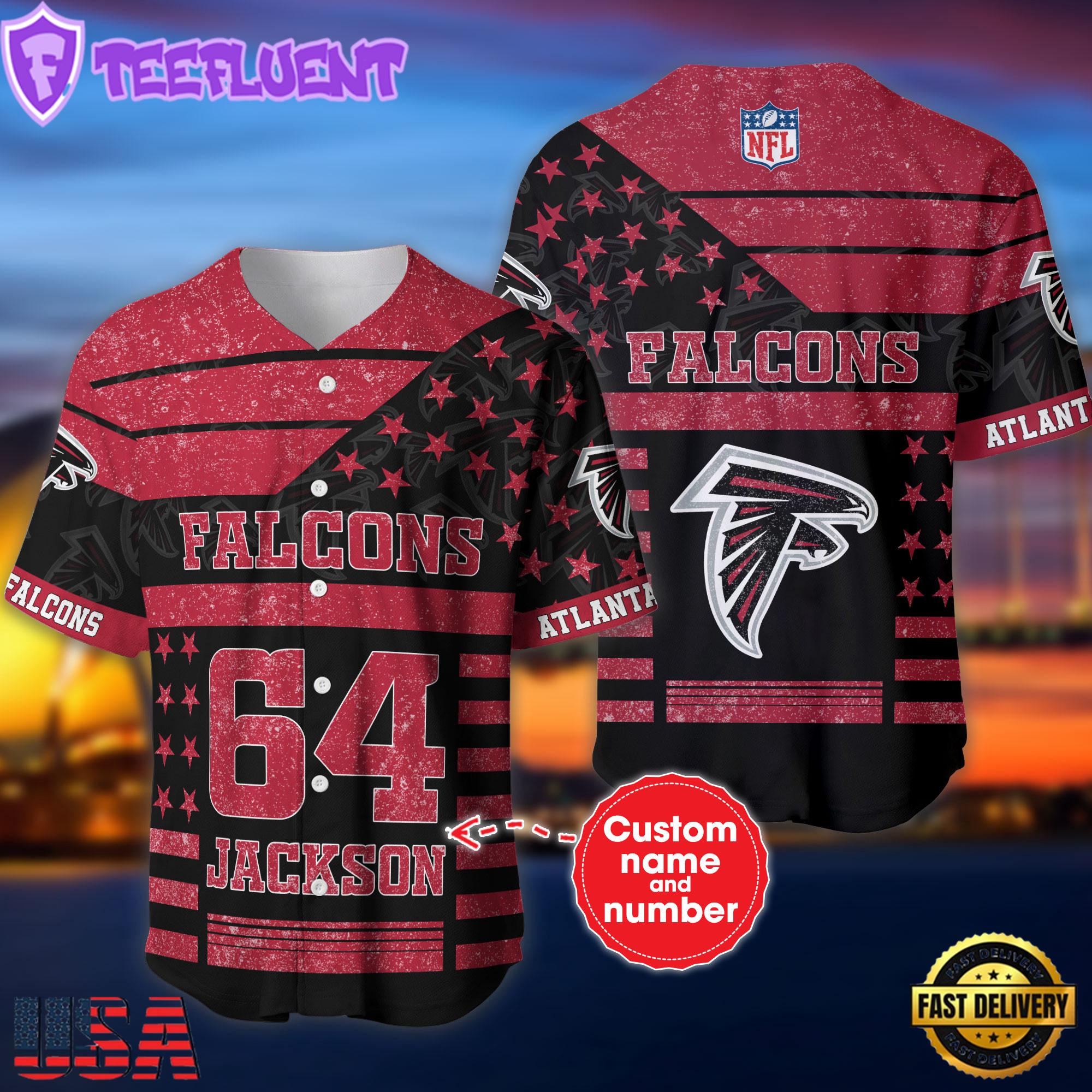 Custom Name Number NFL Atlanta Falcons American Flag Baseball Jersey
